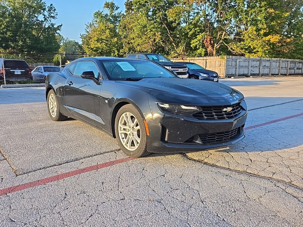 2019 Chevrolet Camaro 1LT it blends muscle car swagger with daily driving usability in a way that turns heads.Performance & PowerUnder the hood, you get a 2.0liter turbocharged inline4 engine delivering about 275 horsepower and 295 lbft of torque.Cars Plus Guam+3auto123.com+3Autoblog+3Standard with a 6speed manual transmission, with an 8speed automatic option available.MotorTrend+2Cars Plus Guam+2Rearwheel drive, giving you that classic sporty feel and tight handling out on twisty roads.Autoblog+2Cars Plus Guam+2Fuel Economy & EfficiencyThe Camaro 1LT clocks in around 20 mpg in the city and 30 mpg on the highway with the 2.0L turbo engine.Autoblog+2CarsDirect+2Combined fuel economy comes out to about 23 mpg.CarBuzz+2Edmunds+2Style & Exterior FeaturesBold, aggressive styling that says I'm here tight coupe lines, sculpted hood, a menacing stance.Kbb.com+3Autoblog+3auto123.com+318inch silverpainted aluminum wheels standard.Cars Plus Guam+2Le Guide de l'auto+2Dualoutlet stainless steel exhaust with bright tips to give it a strong presence (and sound).auto123.com+2Dealer Inspire Brochure+2Interior Comfort & TechSeats for 4 driverfocused cockpit with sporty bucket seats up front.Autoblog+1A 7inch touchscreen infotainment system comes standard, with Apple CarPlay and Android Auto compatibility so you stay connected.CarsDirect+2Cars Plus Guam+2Sixway power adjustable passenger seat, remote start (on some models), steeringwheel audio controls.CarsDirect+2Cars Plus Guam+2Leatherwrapped flatbottom steering wheel adds a sporty, premium touch.Stevens Creek Chevrolet+2CarsDirect+2Dimensions & CapacityThe coupe version is about 188.3 inches long, 74.7 inches wide, and 53.1 inches tall.Autoblog+2auto123.com+2Trunk space is modest around 9.1 cubic feet in the coupe.Autoblog+1Its light and agile: curb weight for the I4 version is about 3,339 lbs (for the manual coupe) depending on options.Edmunds+2Le Guide de l'auto+2Safety & Driver AidsStandard rearvision camera.CarsDirect+2Stevens Creek Chevrolet+2Multiple airbags, traction control, stability systems.Autoblog+2Edmunds+2LED daytime running lights and automatic headlights on many trims to boost visibility and style.Stevens Creek Chevrolet+1What Makes It Stand OutThrilling performance without going all the way to V6 or V8 the turbo I4 gives you great punch, responsive throttle, and solid acceleration.Iconic sporty design: looks like a muscle car should. Aggressive front fascia, low roofline, and strong rear quarter panels give it an unmistakable presence.Good tech and comfort at this level for folks who want the sporty feel and modern conveniences like smartphone integration.Fun yet reasonably usable: Enough practicality for daily use (if you can live with tighter rear seats and a smaller trunk), but with enough excitement that every drive feels special.