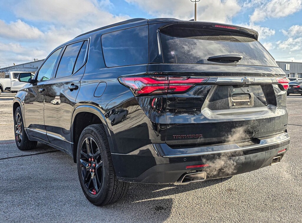 Get behind the wheel of a premium 3row SUV that delivers style, comfort, capability, and confidence for every journey. The 2023 Chevrolet Traverse Premier AWD is engineered to conquer all weather conditions and family friendly adventures with ease.Strong V6 Power + AllWeather ConfidencePowered by a 3.6L V6 engine with 310 horsepower, this Traverse offers smooth, responsive performance whether youre merging onto the highway or heading out on a road trip. Paired with an advanced automatic transmission and AllWheel Drive, youll enjoy confident traction in rain, snow, and everything in between.Spacious Interior for Family & CargoWhether its school runs or weekend escapes, the Traverse has room for everyone:Seating for up to 78 passengers in three spacious rowsEasyaccess third row with comfort for adults and kids alikeMassive cargo space with up to 98+ cubic feet with seats foldedPremier Trim Luxury That WowsStep into premium features youll love:Leatherappointed seating surfacesHeated front seats & heated steering wheelPoweradjustable seats with memory settingsTrizone automatic climate controlHandsfree power liftgateCuttingEdge Tech & ConnectivityStay connected and entertained on every drive:Large touchscreen infotainment systemWireless Apple CarPlay & Android AutoBuiltin navigation (available)Premium Bose audio systemBestinClass Safety & Driver ConfidenceChevy has your back with advanced safety features like:Forward collision alert & automatic emergency brakingLane keeping assist & blindspot monitoringRear crosstraffic alert & surround view cameraWhy Youll Love ItThe 2023 Traverse Premier AWD is the ultimate family SUVcombining spacious luxury, innovative tech, confident AWD performance, and awardworthy capability into one incredible package.