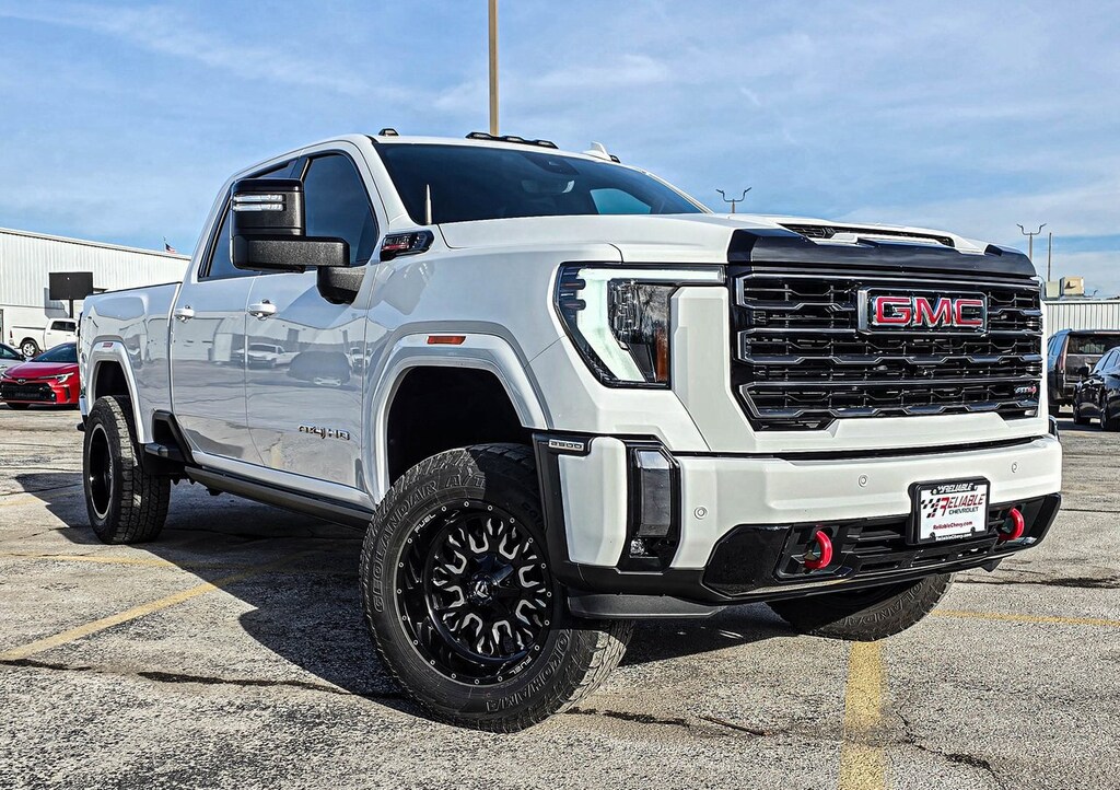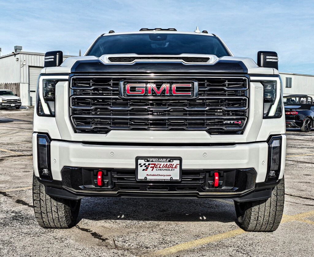 Experience the thrill of commanding one of the toughest and most capable heavy-duty pickups on the road the 2024 GMC Sierra 2500HD AT4 4WD powered by the available 6.6 L Duramax Turbo-Diesel V8. This isnt just a truck its a forged-for-adventure powerhouse that blends brutal torque, serious off-road capability, and advanced tech into a single rugged package thats ready for work, weekend trails, and everything in between.Diesel Power That Demands RespectUnder the hood lies the available 6.6 L Duramax Turbo-Diesel V8, paired with an Allison 10-speed automatic transmission. This legendary diesel setup produces up to approximately 470 hp and a massive 975 lb-ft of torque, giving you extraordinary pulling power while making heavy towing feel effortless.Built to Go Everywhere & Tow AnythingThe AT4 pedigree means this Sierra HD isnt afraid of dirt, mud, or gravel. With a rugged off-road suspension featuring Rancho shocks, skid plates, and Hill Descent Control, its ready for backcountry trails and tough terrain yet civilized enough for long highway hauls.The Duramax engine and chassis deliver serious trailering capability with conventional and fifth-wheel towing figures that soar well into the heavy-duty class when properly equipped.Commanding Style & Functional ToughnessSharp and purposeful styling sets the Sierra 2500HD AT4 apart from the crowd bold grille, rugged off-road ready stance, and available 20 gloss-black wheels paired with all-terrain tires that look as good as they grip. Underneath, heavy-duty skid plates and protective elements give you confidence on rocky or uneven trails.Tech & Comfort That Elevate Every MileInside the cab youll find a modern GMC cockpit loaded with tech: a 13.4 diagonal touchscreen infotainment system, a digital driver display, and available features like a multicolor head-up display with inclinometer and trail-ready cameras. Apple CarPlay and Android Auto integration keep your devices connected, while premium leather and heated/ventilated seating make every journey from job site to weekend getaway comfortable.Why Its Exciting:Diesel muscle with class-leading torque for towing, hauling, and adventure.AT4 off-road capability with tuned shocks, skid plates, and hill-descent tech.Heavy-duty towing confidence engineered to handle big trailers and heavy loads.Modern tech and rugged comfort make it as enjoyable on long drives as it is capable off the beaten path.Whether youre chasing mountain cabins, hauling heavy equipment, or exploring wild trails, the 2024 GMC Sierra 2500HD AT4 4WD with the 6.6L Duramax Turbo-Diesel is the ultimate heavy-duty adventure truck ready to tackle it all with power, poise, and personality.